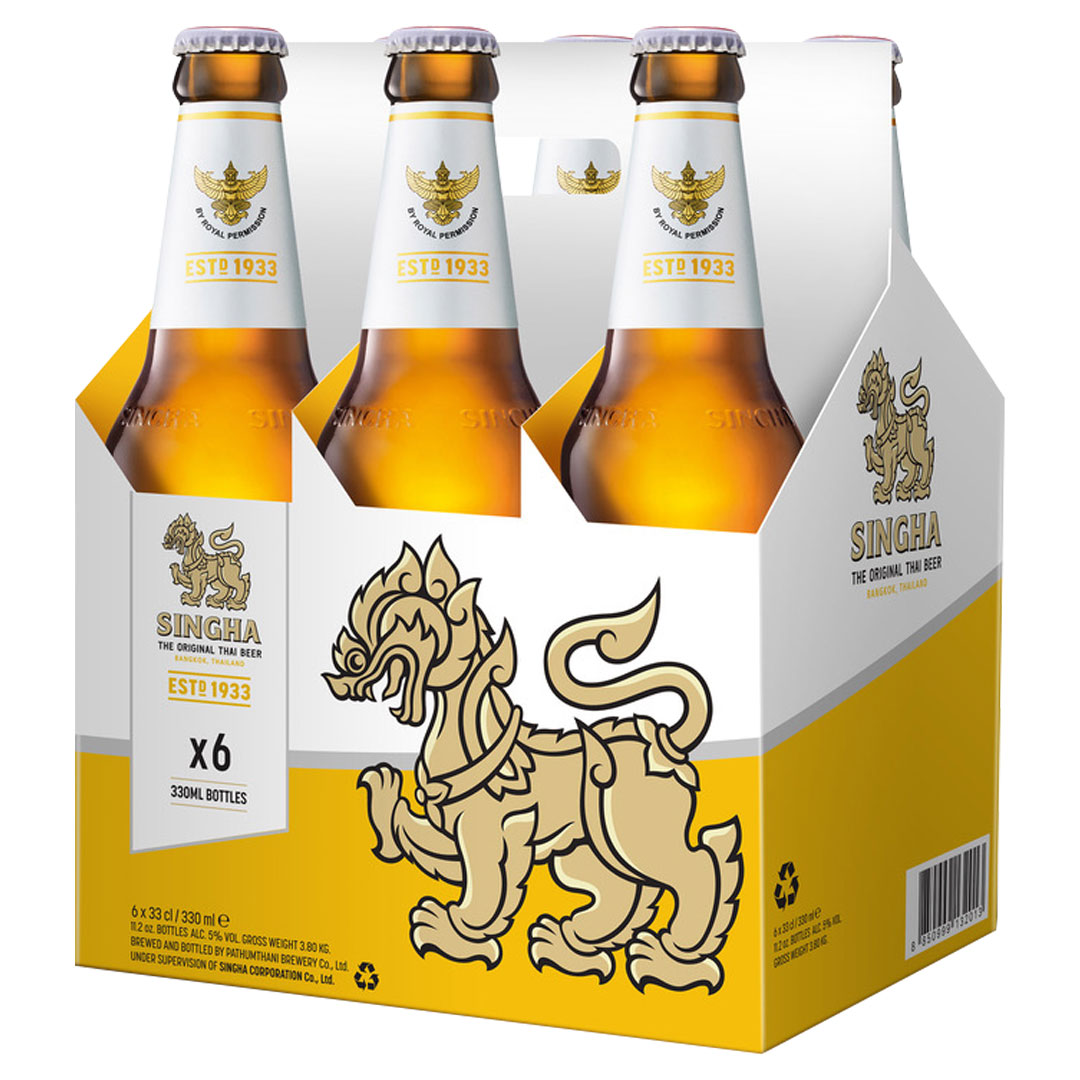 Singha Lager Beer 6pk Bottles 330ml Imported